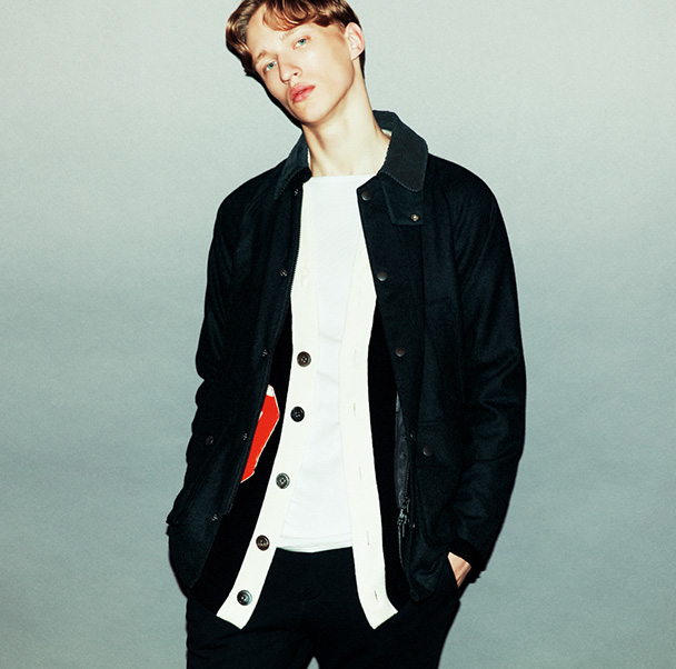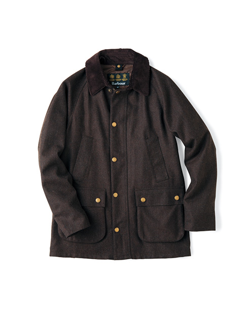 表地に高級ツイード生地で定評のある英マラリウス社のライトツイードを採用した〈バブアー〉の別注『ビデイル SL』。裏地には温度調節素材アウトラストを使用し、快適な着用環境を実現しています。袖口や衿まで同色で統一してシックな印象。ブラックとブラウンの2色を展開。