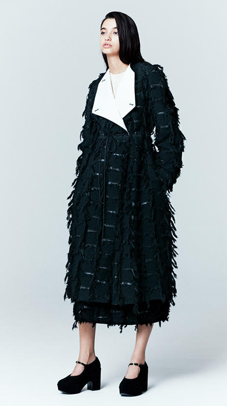 2015年秋冬より福屋千春がスタートした〈コート〉。約10年間オートクチュールとプレタポルテの世界で経験を積んだ福屋の、クチュールのバックグラウンドを感じさせるクラフト感溢れるコレクションからは、新鮮な装飾性が感じられます。
